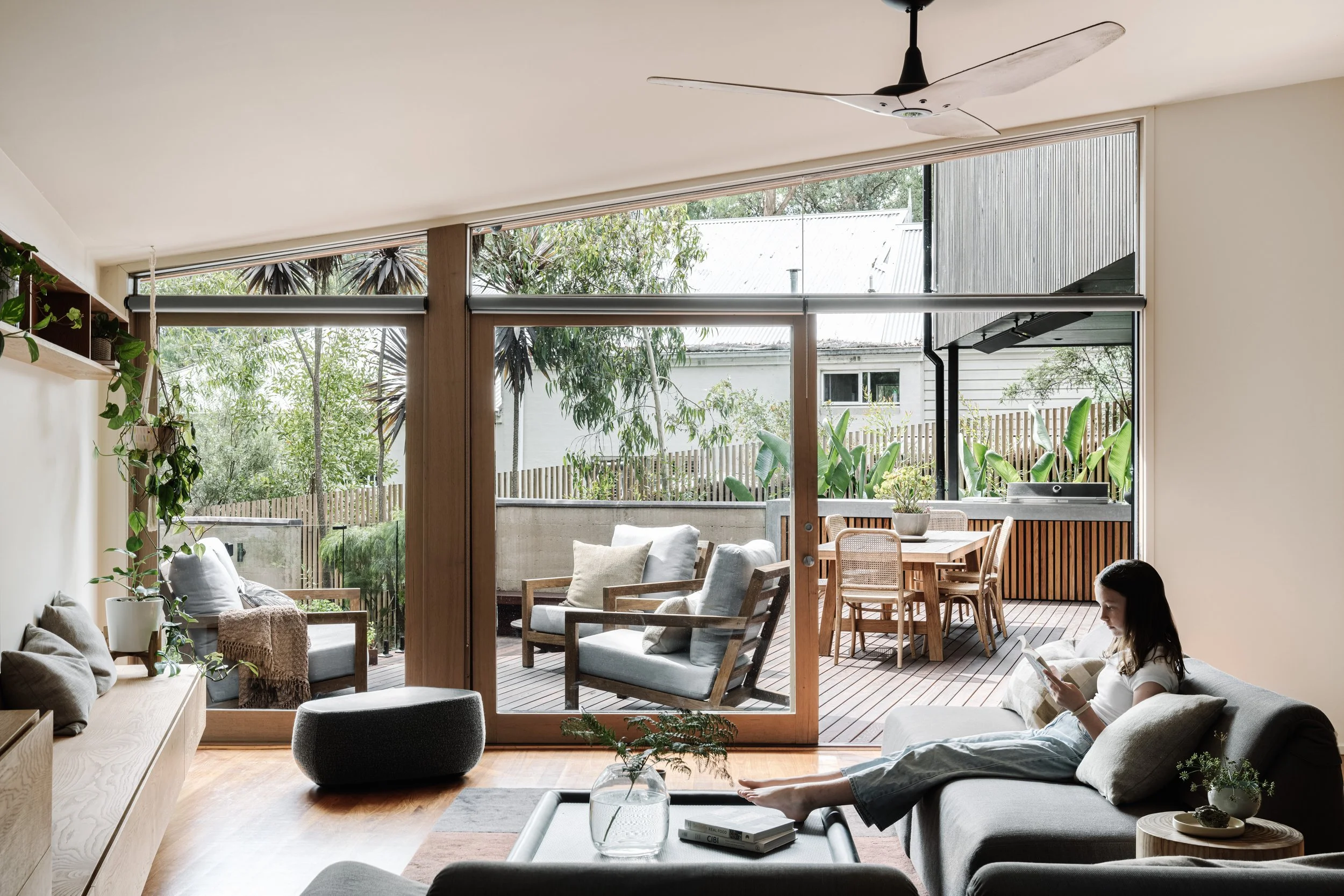 It's easy to see why Yvette loves her new deck. Made from durable ironbark, it’s the perfect spot for alfresco dining, family fun, and as Yvette says, an "instant sense of calm." This outdoor area is a seamless extension of the home's new living spaces.