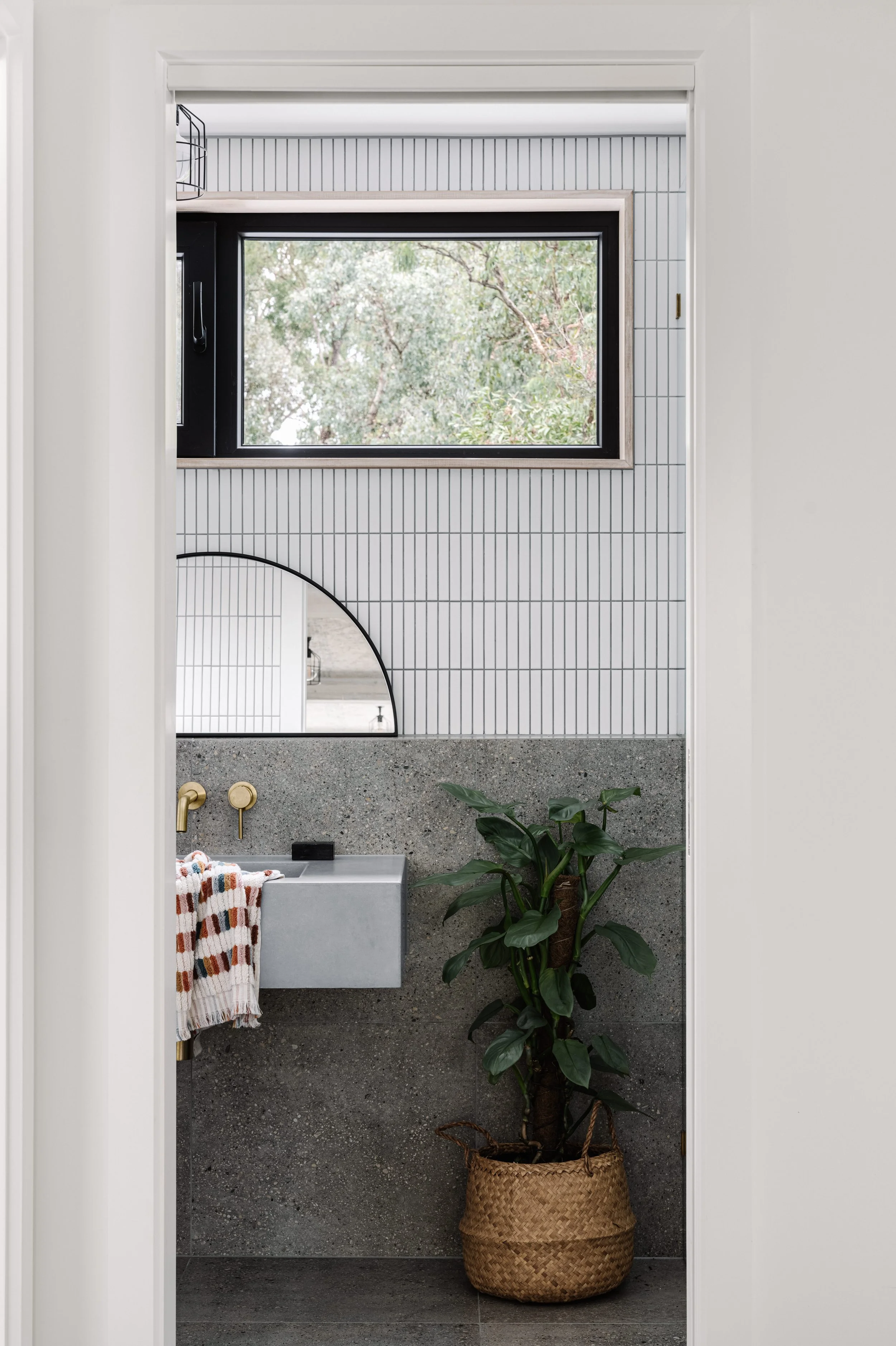 Details matter in a high-performance home. The striking contrast of the dark grout and white tiling makes this a standout feature in this bathroom.