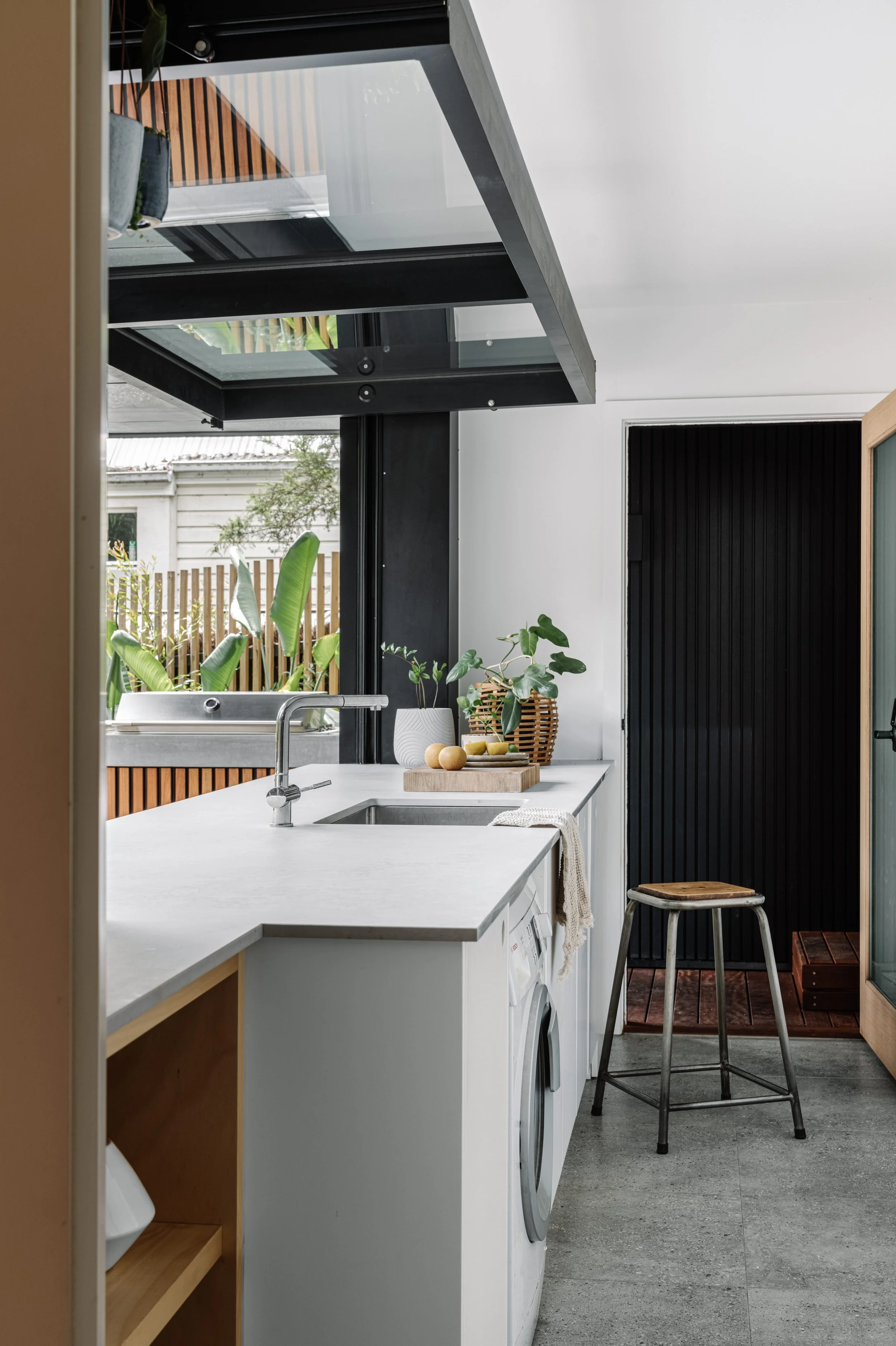 “It opens up and changes the whole feel of the room, bringing the outdoors in. I will often sit and have my coffee or eat my breakfast at the laundry bench!”