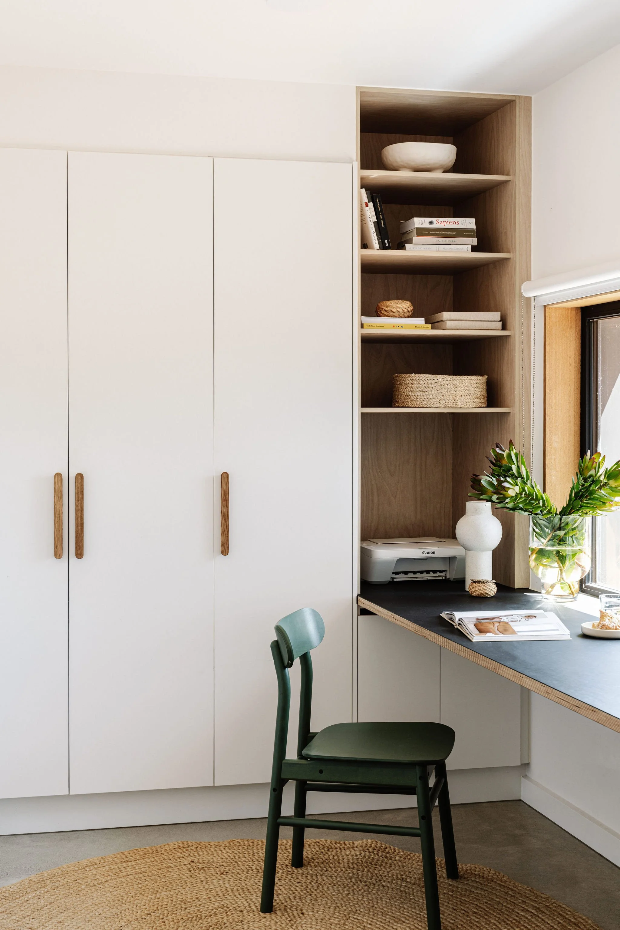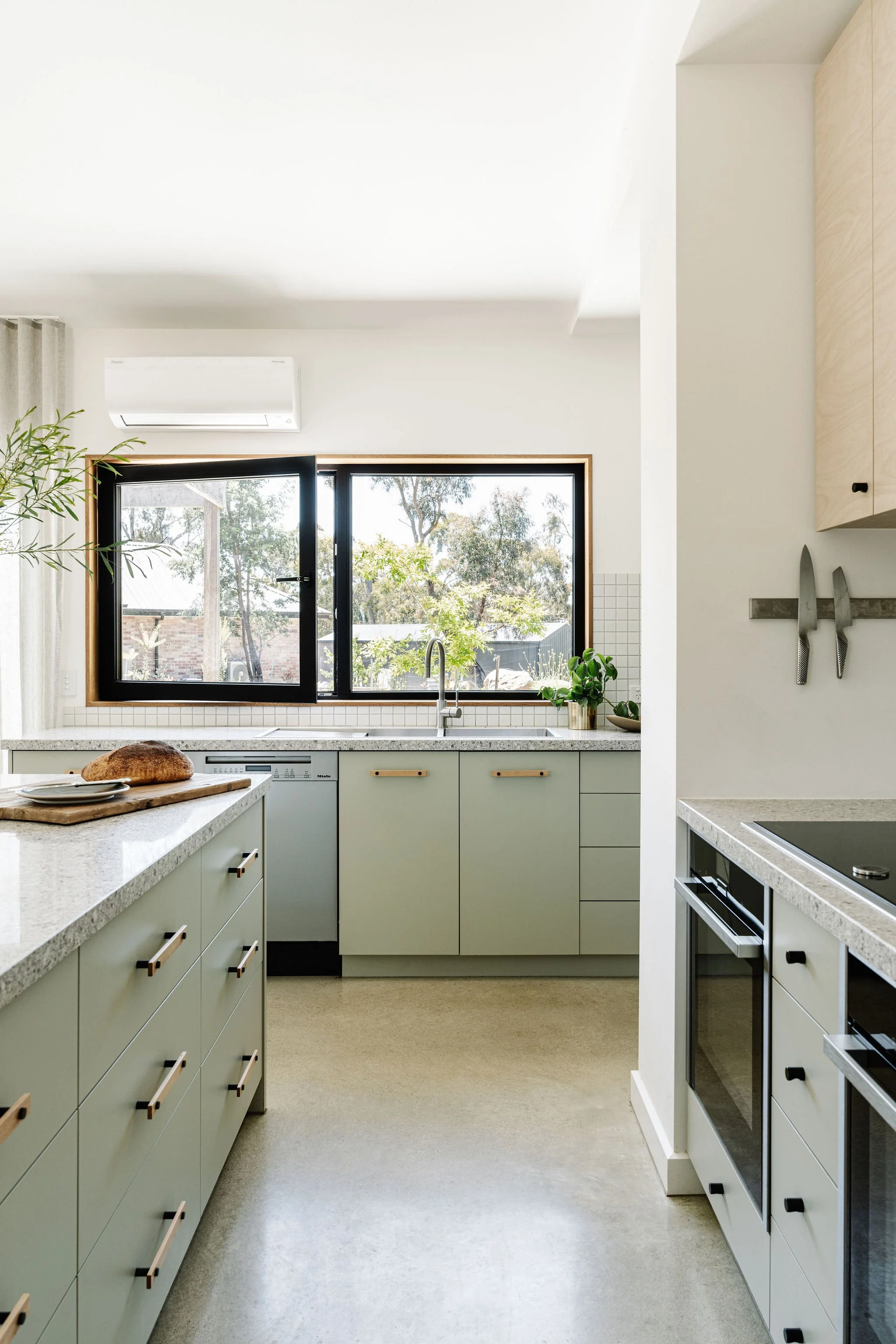 This all-electric home runs on solar power, with efficient features like a heat pump water system and induction cooktop keeping things smart and sustainable.