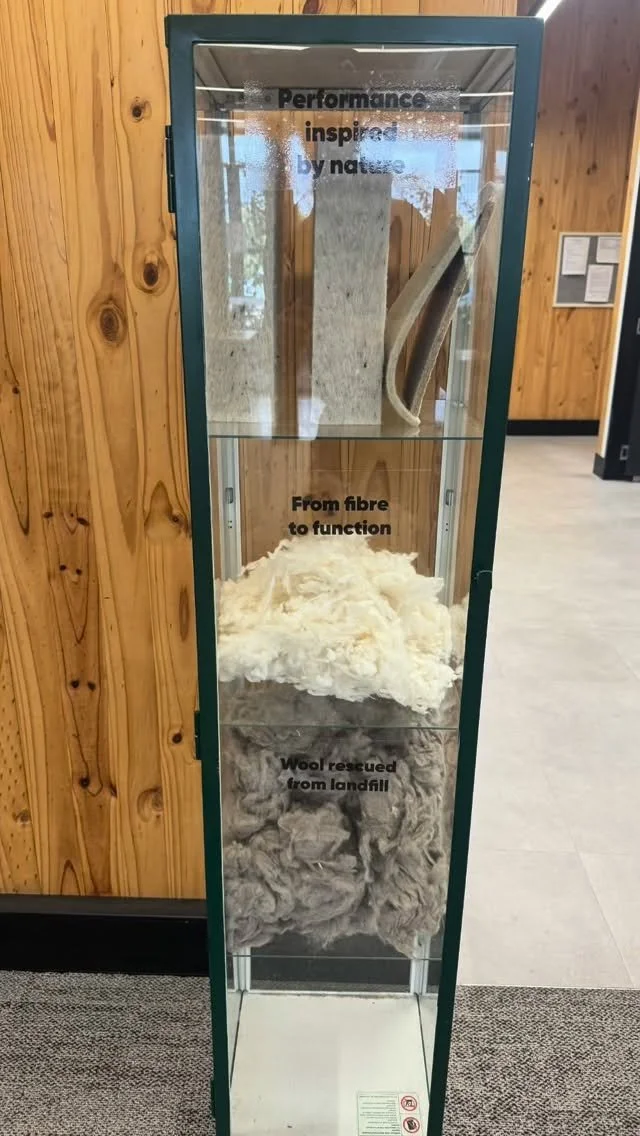 In the home office, walls feature surplus OSP panels. Every fixture from the windows to the desk uses reclaimed materials from other sites.