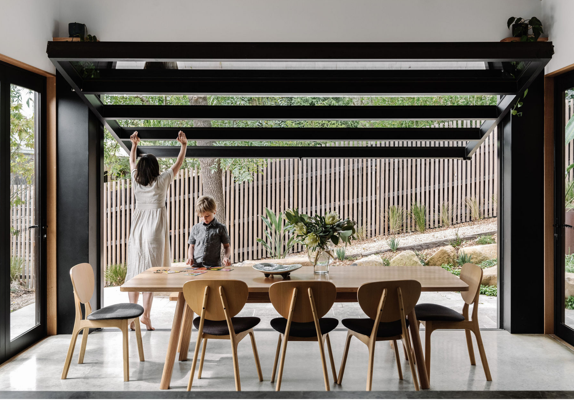 This high-performance extension on a 1960s home in Melbourne showcases how sustainable living can blend with classic design. Featuring an open-plan kitchen and living area, this home prioritises a strong connection to nature and exceptional energy efficiency.